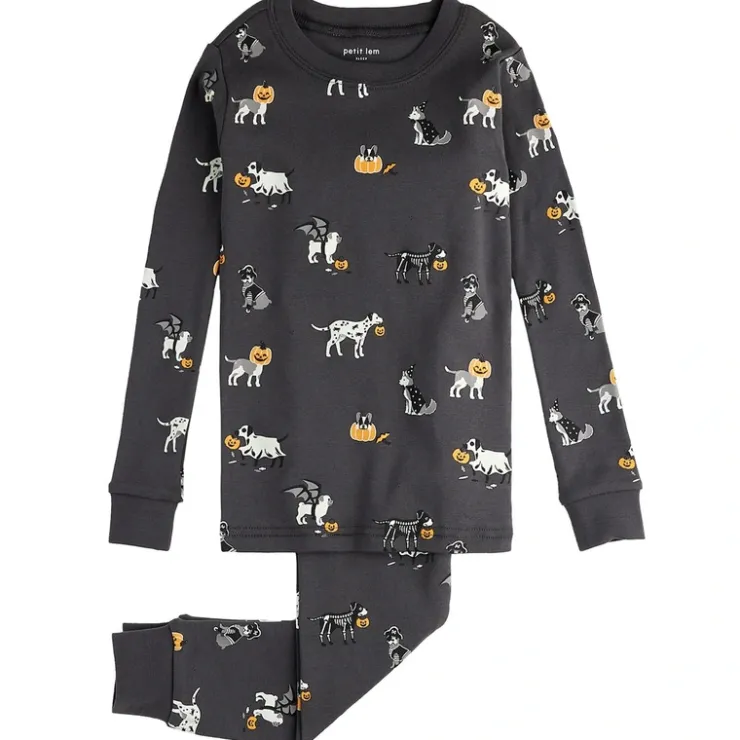Parfait pour les enfants qui aiment Halloween, presque autant que leurs amisquatre pattes. Ce pyjama brille dans le noir pour ajouter un peu de magiel’heure du coucher. L’ensemble est fabriqupartir de coton ctel biologique et dot de poignets et de chevilles ctels pour un ajustement confortable et souple, ce qui leur donne la libert de courir partout pour faire des btises avant d’aller au lit.