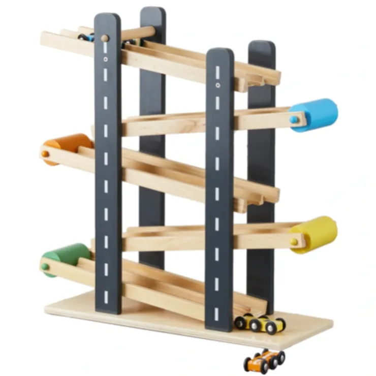 Theyll be off to the races with our Fast Track. Brightly painted with non-toxic paint and 5 natural wood slopes let the races begin. Includes 4 race cars for independent play or with friends.
