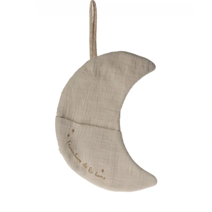 When the sun goes to bed, the Maileg Moon L’aventure de la lune, comes out to play and illuminates the night with its gentle glow. This cozy moon is a charming addition to any child’s room, complete with a tiny pocket for your tooth fairy and lovely embroidery on the front.