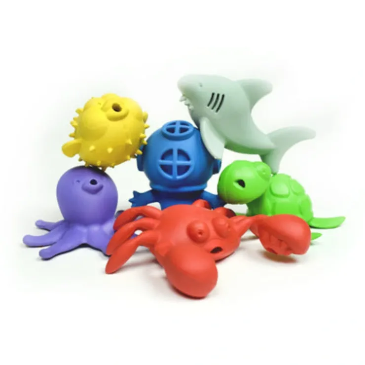 Made from natural rubber, these fun characters bubble when submerged and drain easily after playtime in the bath, beach or pool.