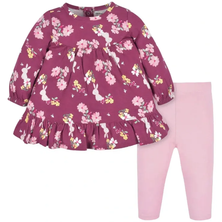 Fall in love with our 2-piece baby and toddler dress sets! Each one is designed for easy dressing and all-day comfort, perfect for babies and toddlers. We use STANDARD 100 by OEKO-TEX certification on products tested in an independent laboratory against a list of more than 400 harmful substances, including PFAS. This pack includes one maroon floral dress and one pair of pink leggings.