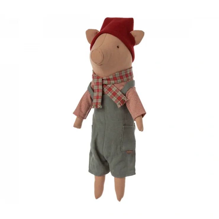 This soft Maileg Christmas Pig is dressed in classic Christmas clothes. It is very beautiful for decoration but also sweet for play during December. The hat is removable, and then the pig can be used all year for any occasion.