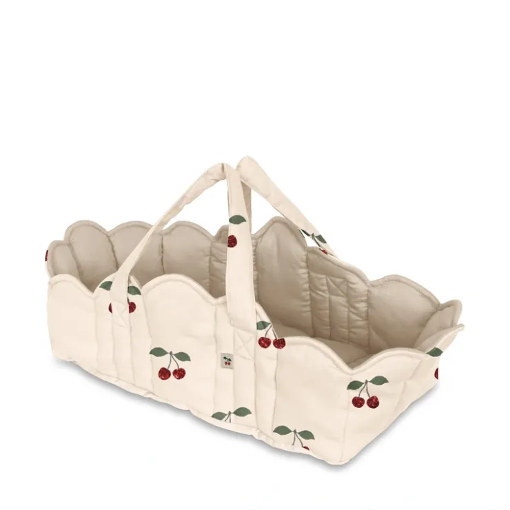 Padded doll lift made in 100% cotton. Designed with practical carry straps, soft piping, and scallop hems.