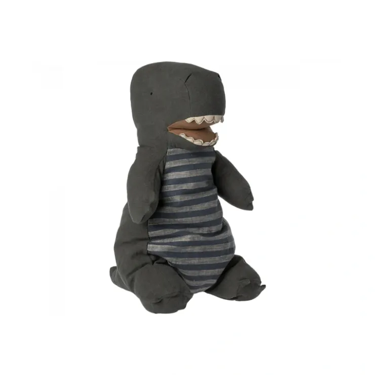 Look at this funny friend! A large Maileg Gantosaurus with big teeth has arrived and is ready to play with all of us. It is made in a soft mix of ramie and cotton, with a striped stomach in a very nice blend of linen and cotton.