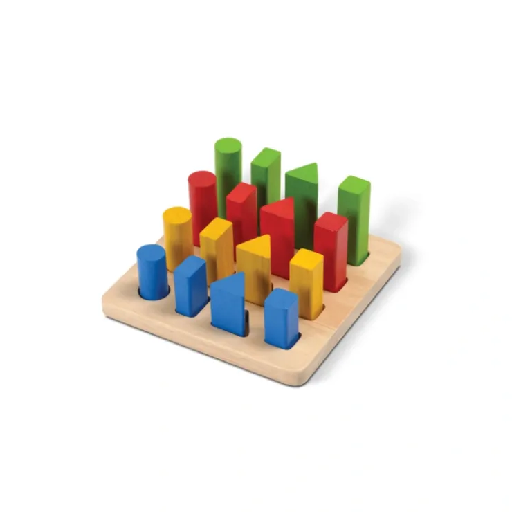 - Includes 16 geometric pegs for sorting, stacking, categorizing and manipulating