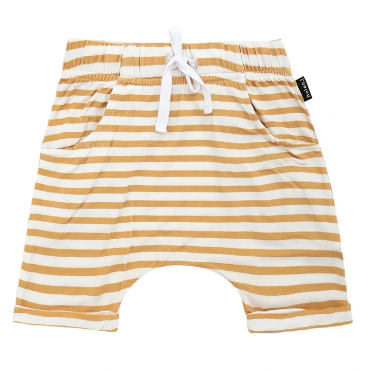 Elastic waisted pants made in premium Bamboo feature a drop crotch harem style and front pockets. These bamboo daywear essential, features a functional drawstring to make these easy to get on/off busy toddlers. Bamboo fabric has moisture wicking properties and is naturally temperature regulating making these a great daywear style for spring/summer.