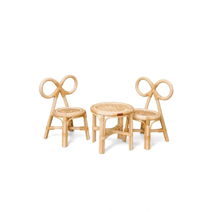 The perfect mini table and chairs set. Poppies mini Bow and mini Bunny chairs and table are ideal for imaginary tea parties. Dolly and teddy like nothing more than a nice cup of tea and a slice of cake. Includes doll sized table and 2 doll sized chairs