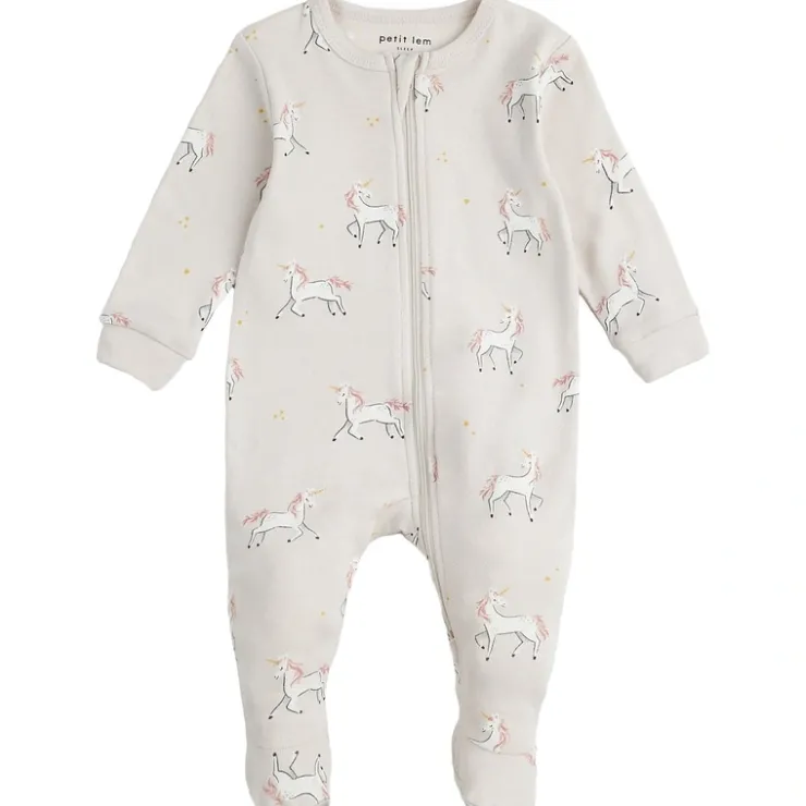 Pyjamaimprim ludique de licorne. Elle est confectionne en coton ctel biologique, elle est donc parfaite pour les mois les plus frais. Avec ses pieds intgrs et ses poignets lastiqus, la dormeuse est trs confortable et laissevotre enfant toute la libert ncessaire pour gigoter et jouer.